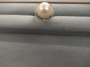 プラチナ900 南洋真珠 白蝶 ダイヤ入り リング